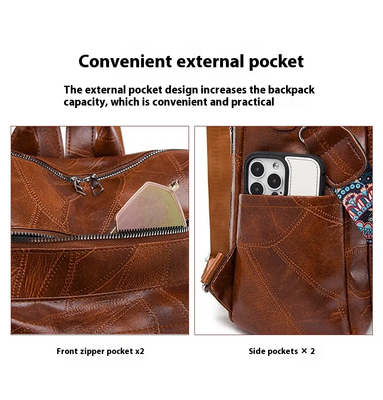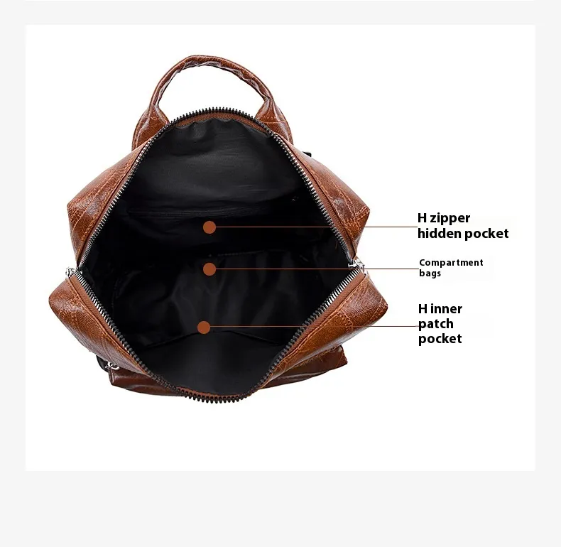 The vintage-inspired design of this backpack makes it a standout accessory for any casual outfit. Its soft, high-quality leather-like material and elegant details give it a sophisticated yet laid-back appearance that works well with both formal and casual looks. The rich tones and classic hardware accents, such as metal zippers and buckles, add to its timeless appeal, making it an excellent choice for anyone looking to embrace retro style with modern convenience.