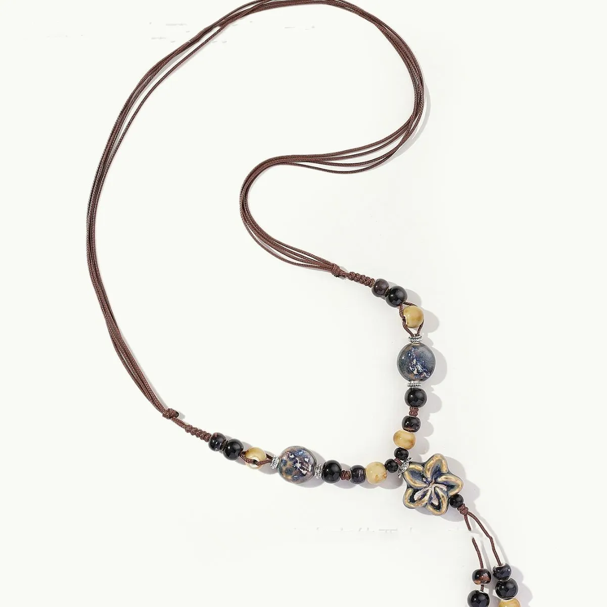 Vintage Sweater Chain Women's Long Flower Ceramic Necklace