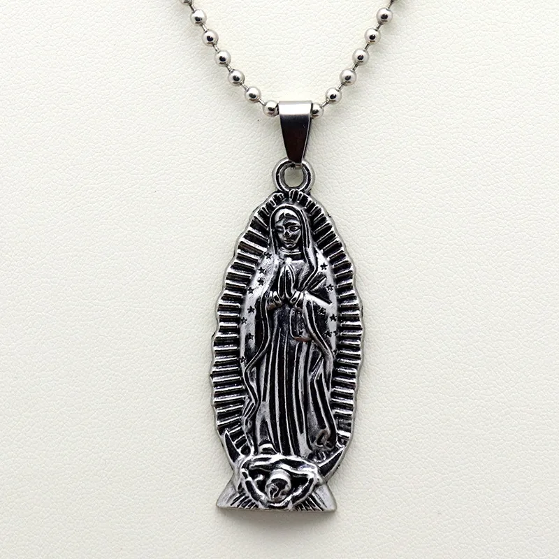Virgin Mary Prayer Long Men Necklaces Pendants Chain Punk for Boyfriend Male Stainless Steel Jewelry Creativity Gift Wholesale