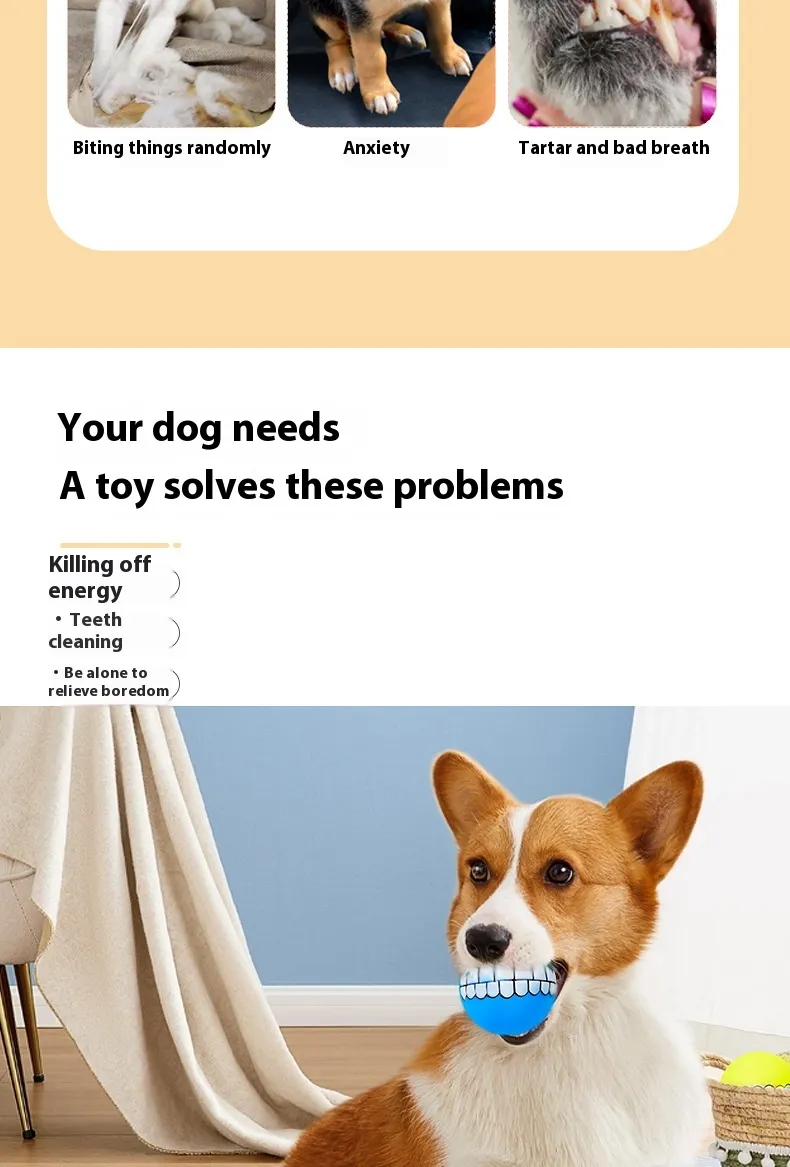 This pet toy ball is more than just a fun plaything. Its unique molar design helps promote good dental health by massaging your pet's gums and cleaning their teeth as they chew. The bite-resistant material ensures the ball can withstand aggressive chewing, making it the perfect choice for teething puppies and dogs who love to gnaw. The vocalization feature adds an extra layer of excitement, keeping your pet engaged during playtime.
