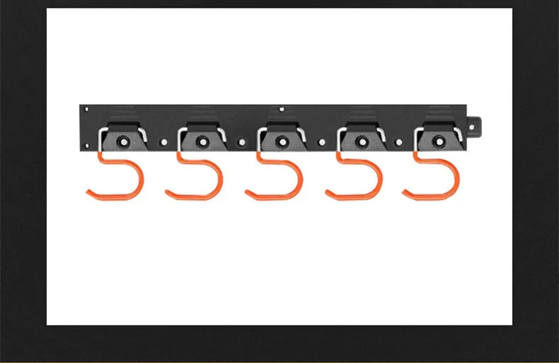 This rack features five evenly spaced hooks designed to hold a variety of items such as screwdrivers, pliers, gardening shears, tape measures, and more. The hooks have a smooth finish that prevents damage to your tools while providing firm support.