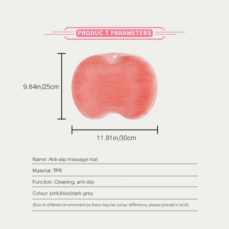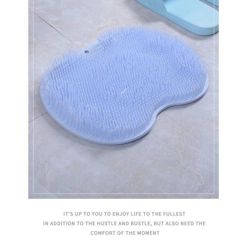 The suction cup foot mat provides a stable, non-slip surface for you to stand on while using the body scrubber. This ensures that you maintain balance and comfort while washing your feet or exfoliating your lower body. The mat's suction cups adhere firmly to the floor of your shower or bath, making it a safe and secure option for anyone who may have difficulty standing or balancing in the shower.