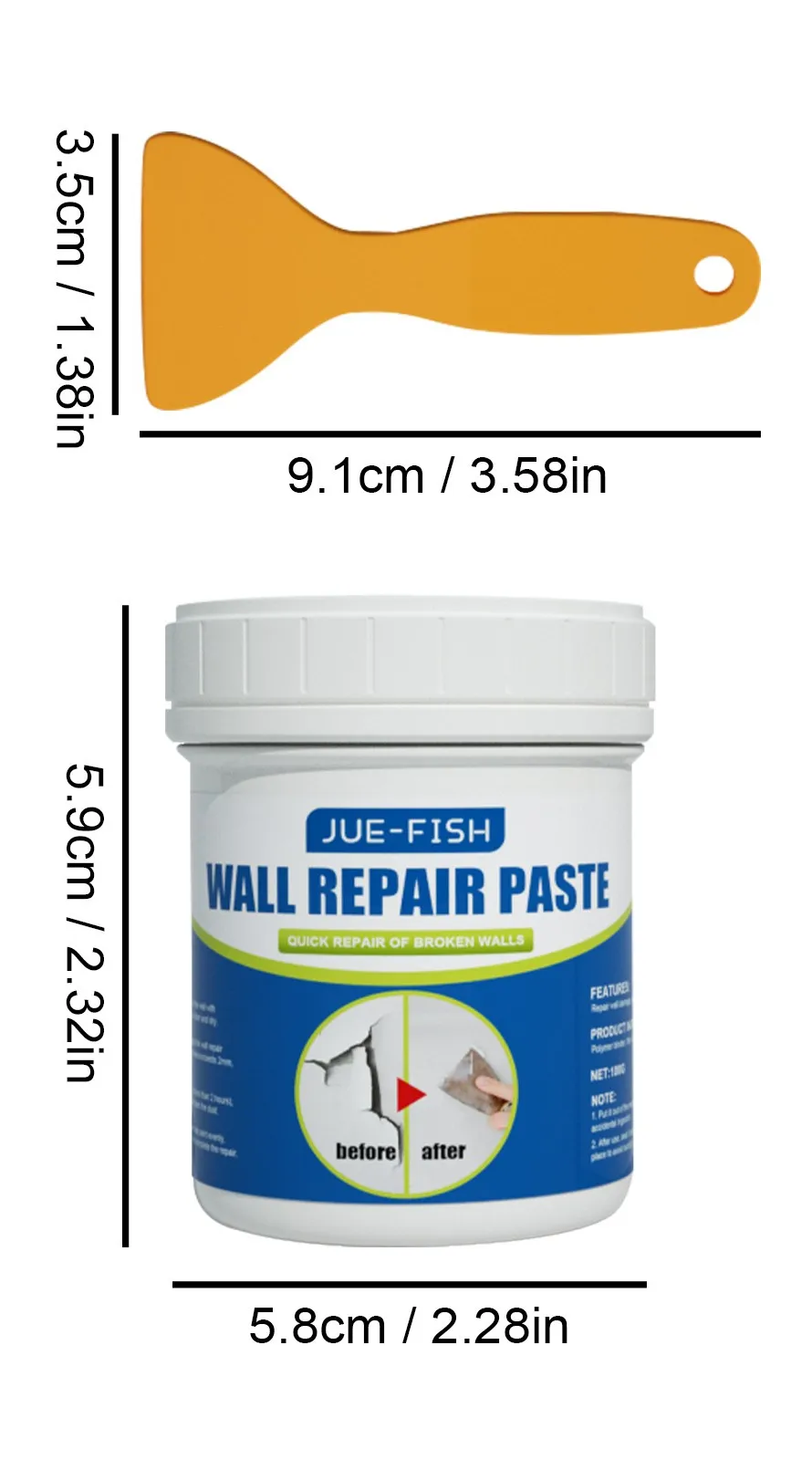 The Wall Repair Paste Cover Stains is a multi-purpose, easy-to-use filler designed to repair, conceal, and refresh walls with a clean, professional finish. Ideal for covering stains, cracks, nail holes, and dents, it restores your wall’s original look without the need for complex tools or messy cleanup. Perfect for homeowners, DIY users, and maintenance professionals, it ensures smooth, stain-free walls in minutes.