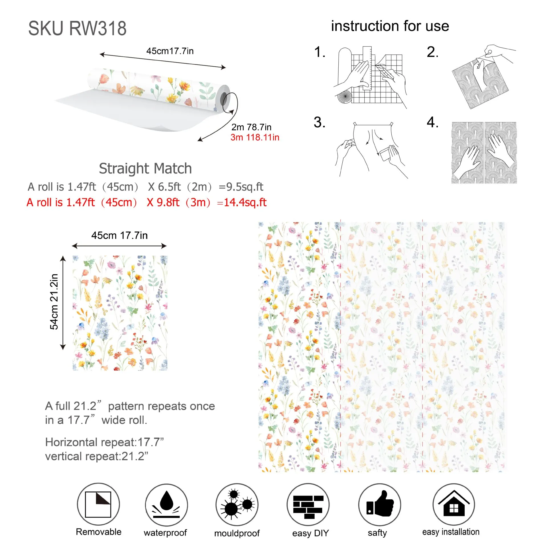 Specifications: 17.7in * 118.1in(45 * 300cm)* 1pc
