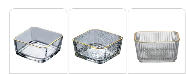 Style: Gold edged transparent bowl, hammer pattern bowl, vertical pattern bowl