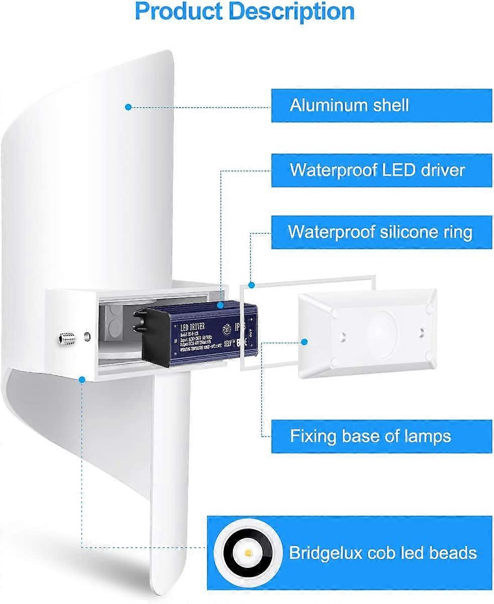 [Modernes einfaches Design]: Hergestellt aus hochwertigem Aluminium mit elegantem Lichtbogen, Die Oberfläche ist matte Sprühfarbe, nicht leicht zu oxidieren, nicht verblassen. Modische Wandleuchten sorgen für einen schönen Lichteffekt. [Produktparameter] Spannung: AC 85V-265V.Diese Wandleuchte verwendet hochwertige LED-Chips, einen guten Wärmeableitungseffekt, einen geringen Energieverbrauch, eine Lebensdauer von bis zu 50.000 Stunden, keine Notwendigkeit, die Glühlampe auszutauschen, langlebig. [IP65 wasserdicht] -IP65 ist die wasserdichte Bewertung von LED-Beleuchtung. Geeignet für drinnen oder draußen. Farbtemperatur: 3000K (warmweißes Licht) [Einfache Installation] Wandmontage / Aufputzmontage mit Kabel ohne komplizierte Installationsverfahren. Kann je nach Dekoration vertikal oder horizontal installiert werden. Hinweis: Um Ihre Sicherheit zu gewährleisten, installieren Sie diese bitte unter Anleitung eines Elektrikers. [Empfohlener Ort]: Der perfekte Lichteffekt der oberen und unteren Wandleuchten kann eine angenehme Atmosphäre schaffen. Im Treppenhaus, Schlafzimmer, Wohnzimmer, Balkon, Küche oder Flur.