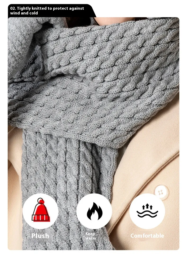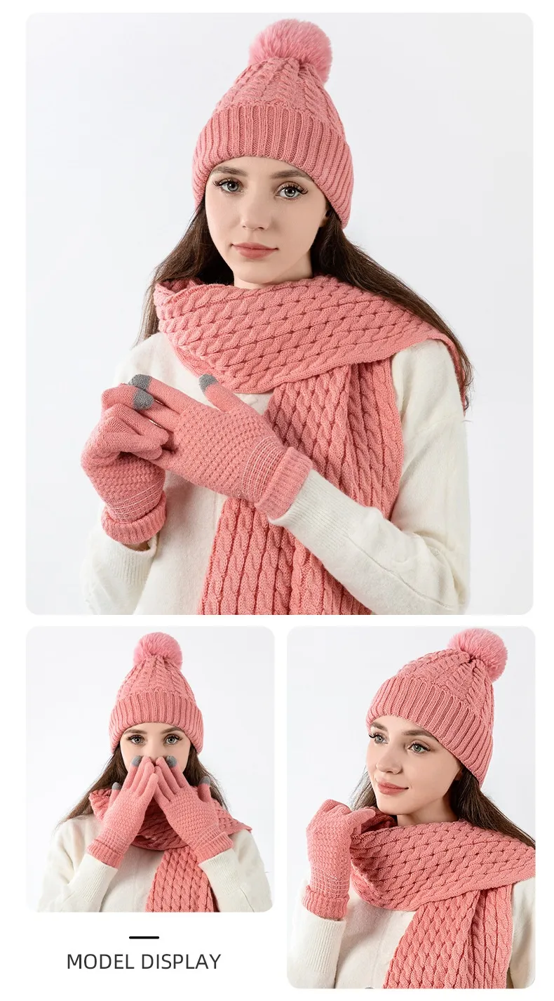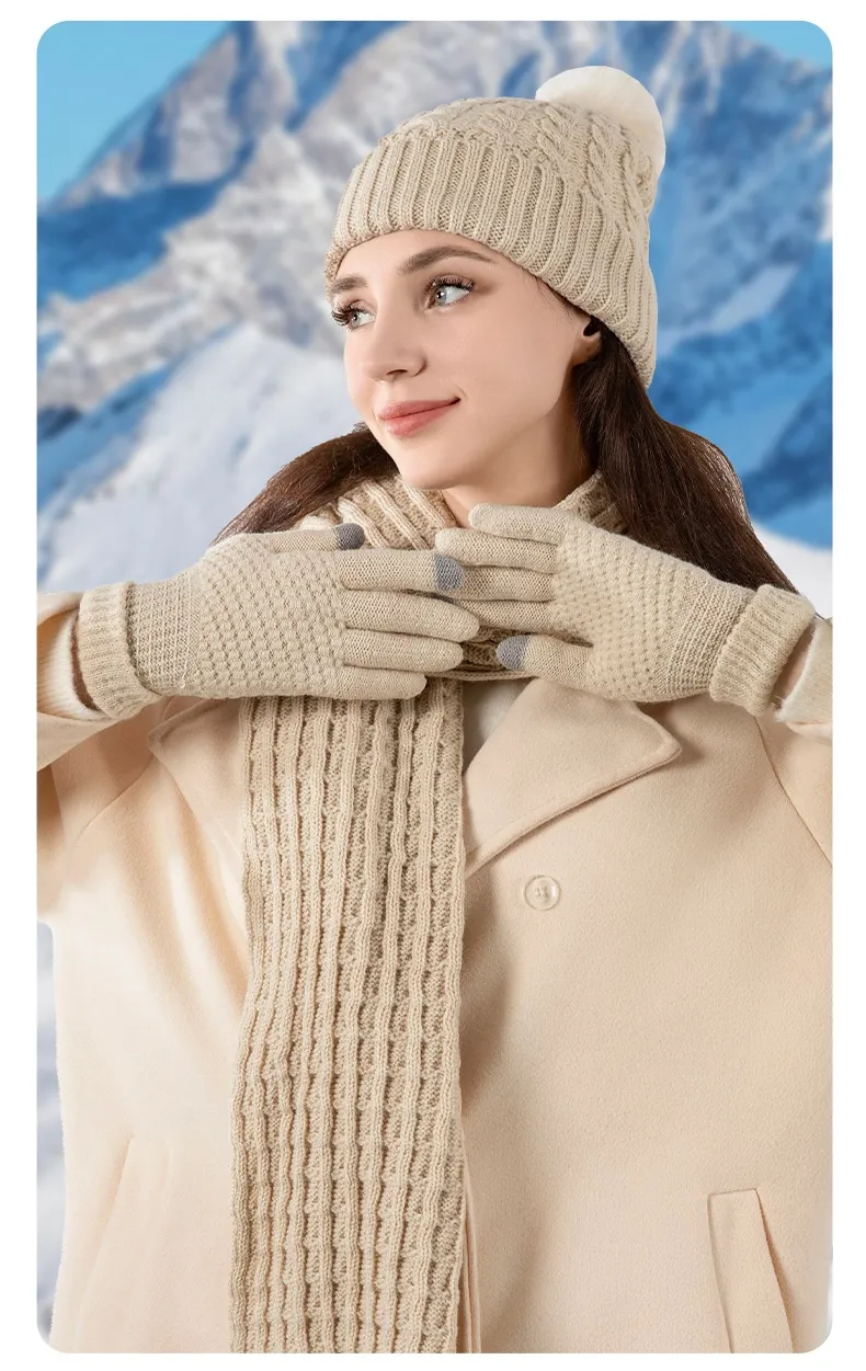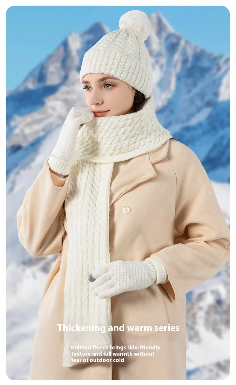 Warm Wool Knitting Hat, Scarf And Gloves Three-piece Set