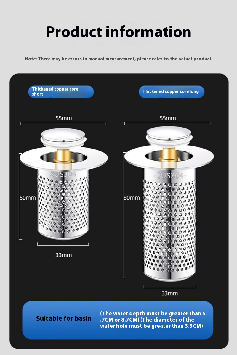 Wash Basin Leaking Plug Bounce Core Drainer Accessories With Strainer