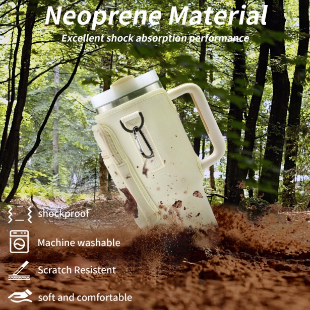 - 【Premium Neoprene Material & Durability】: Bid farewell to worries about your water bottle's wear and tear. Our water bottle carrier is made from high-grade neoprene, offers unmatched waterproofing, shock absorption, and lightweight comfort. It guards your tumbler against collisions and scratches while eliminating noise when placed on surfaces. This protection extends the life and look of your tumbler, ensuring a noise-free, serene experience.