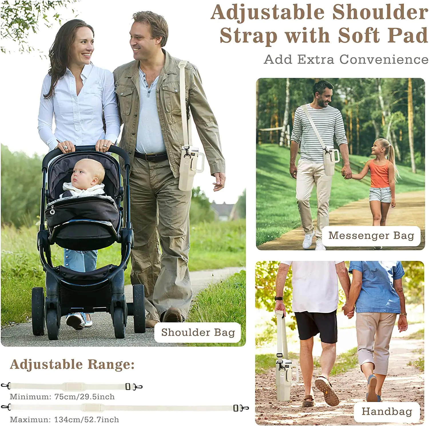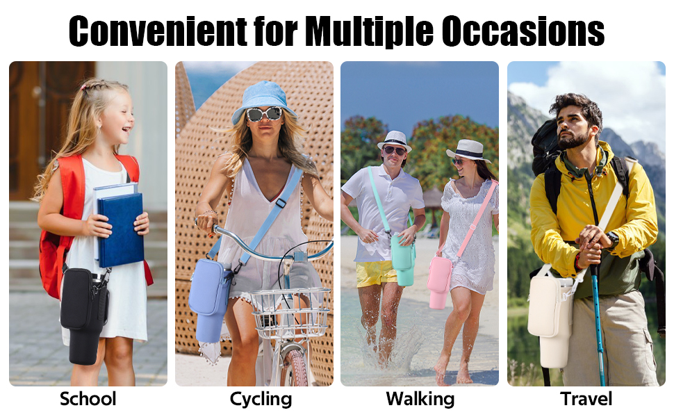 - 【Widly Used & Perfect Gift Choice】: This elegant water bottle carrier bag is not just a practical accessory; it's an extension of your active lifestyle. Whether you're walking, biking, camping, at school, commuting, or enjoying a day at the beach, gym, or a sports event, this stanley cup holder fits seamlessly into your life. This is an ideal gift for anyone who cares about mug protection and anyone who appreciates both style and functionality in their outdoor gear.