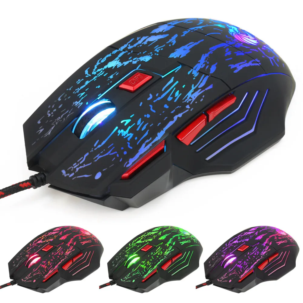 Water Crack Colorful Luminous Game Mouse Wired Mouse