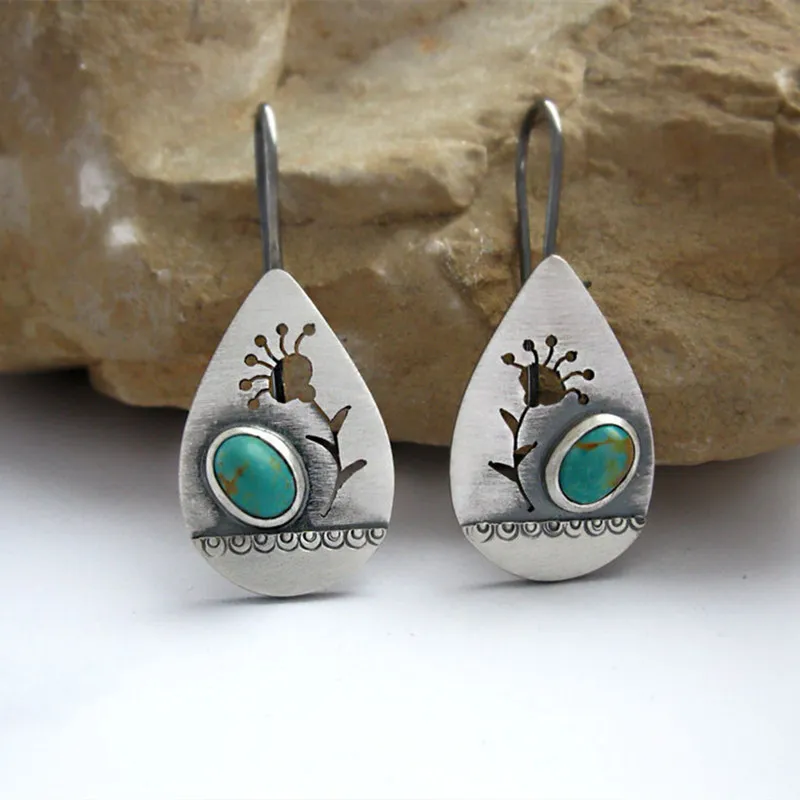 Water Drop Hollow Retro Flower Earrings