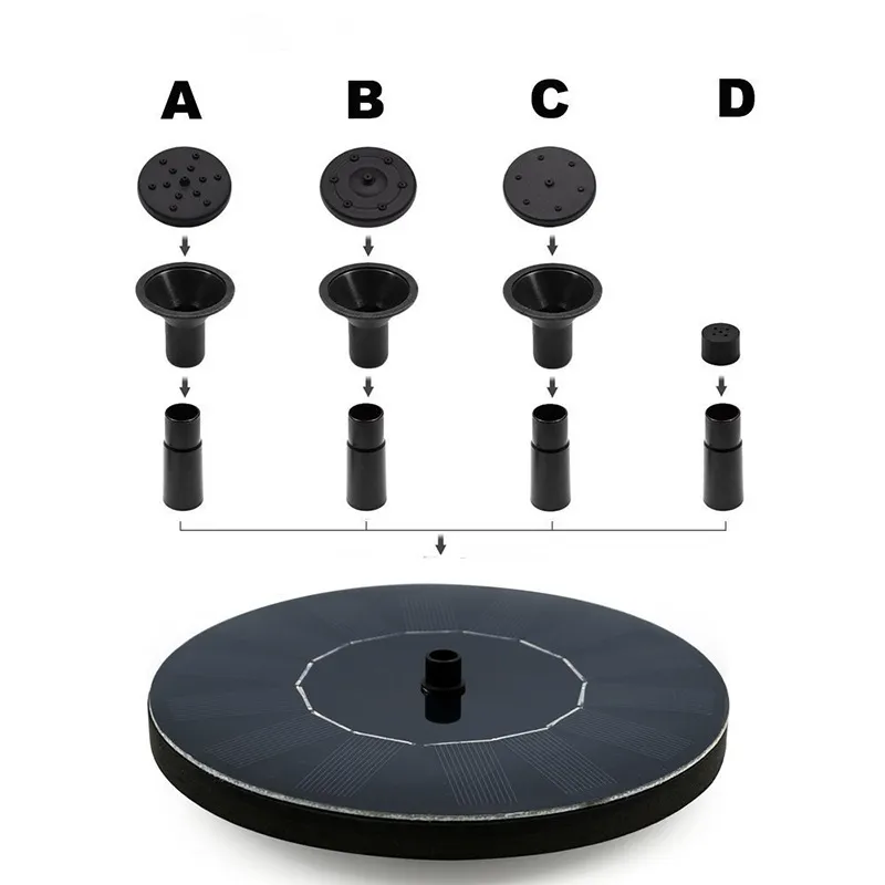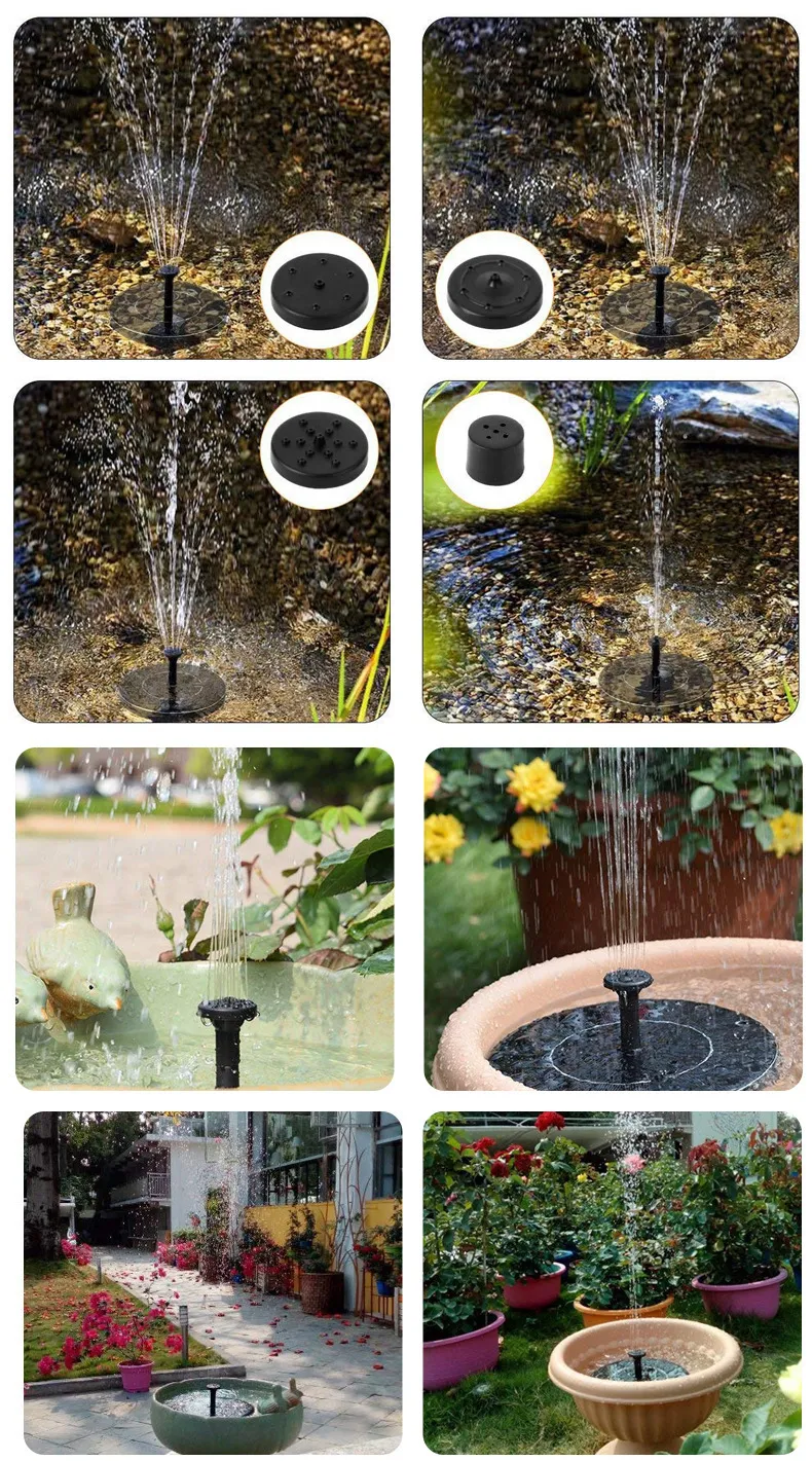 ★Enjoy a variety of different visual feasts. 4 different nozzles can meet the different needs of your solar water pump for jet height or jet