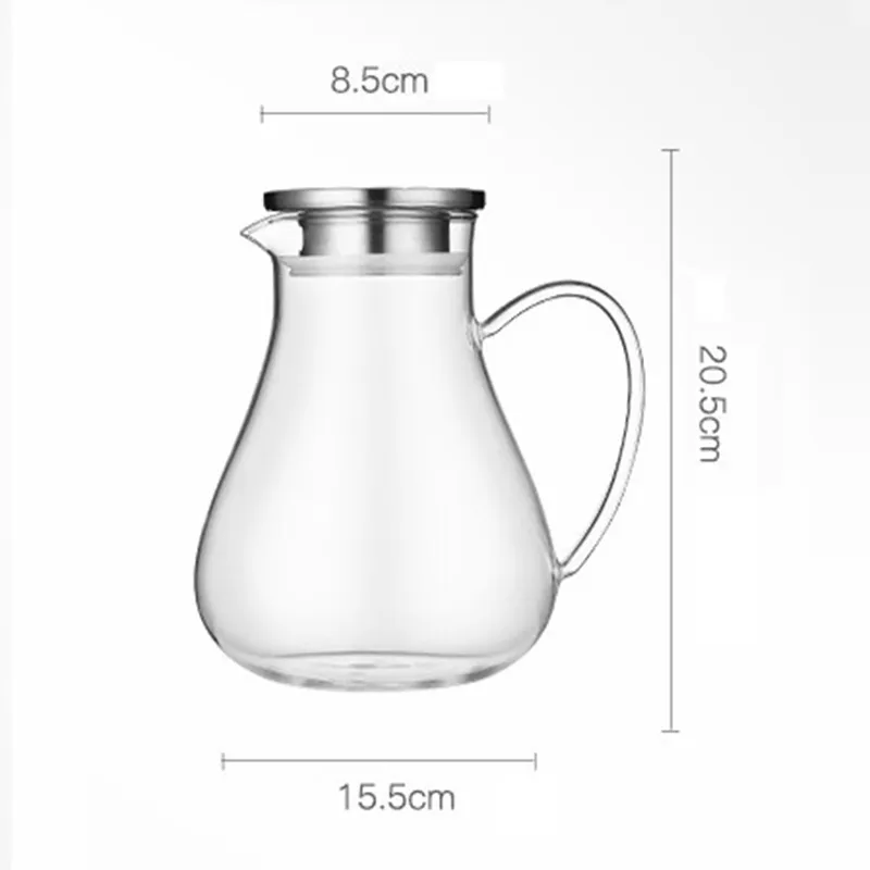 1. High quality material: This water jug is made of high-end borosilicate glass, heat-resistant (-30-150 ° C) and explosion-proof. It can be