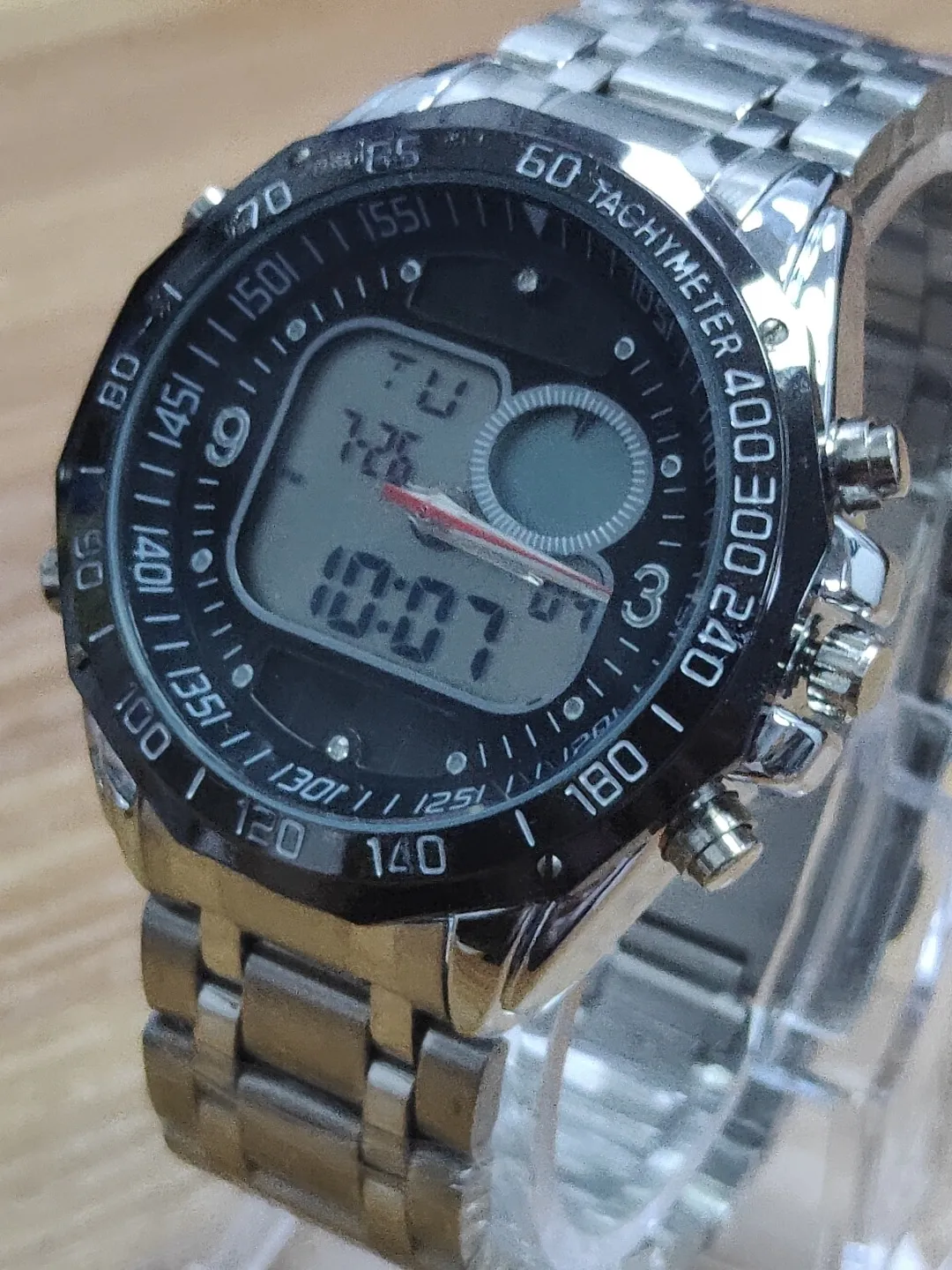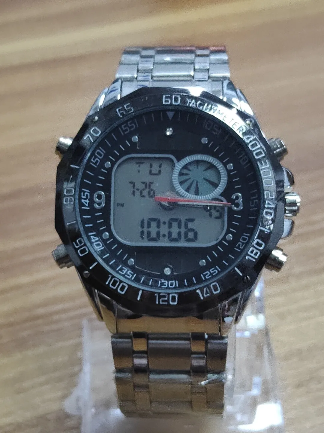 flexibility and convenience. The analog display offers classic time reading, while the digital display