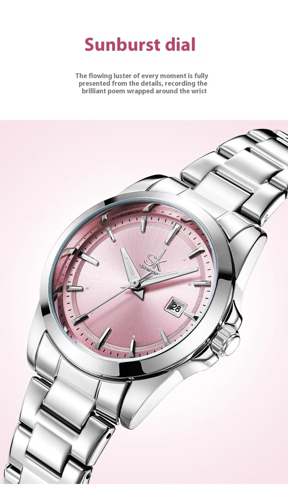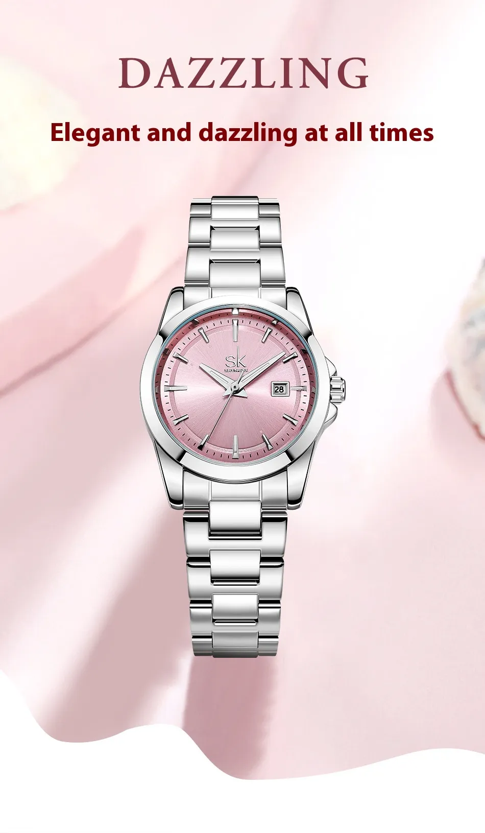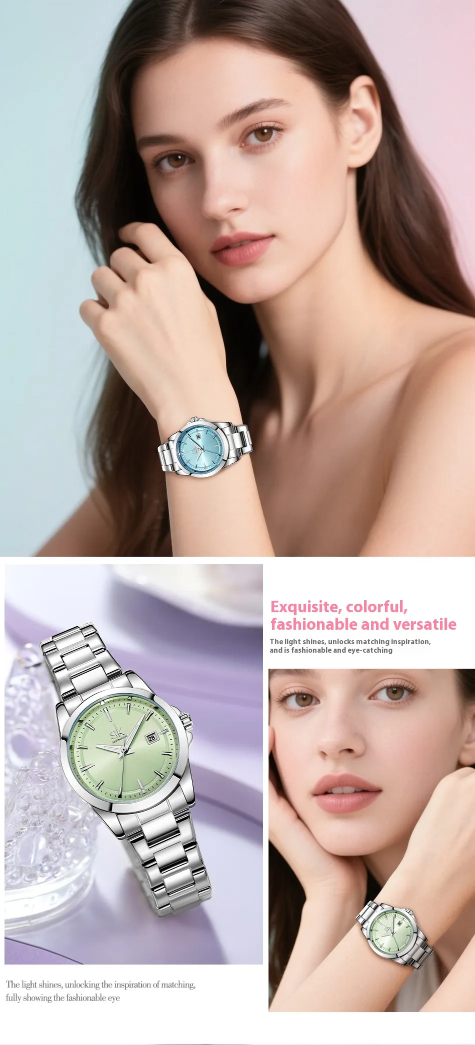 The stainless steel case and bracelet are made from high-quality materials that ensure the watch is not only durable but also resistant to scratches, rust, and discoloration. This makes it a long-lasting investment for women who want a watch that will stand the test of time. The polished finish of the stainless steel adds a luxurious touch, making it an elegant accessory that complements both casual and formal outfits.