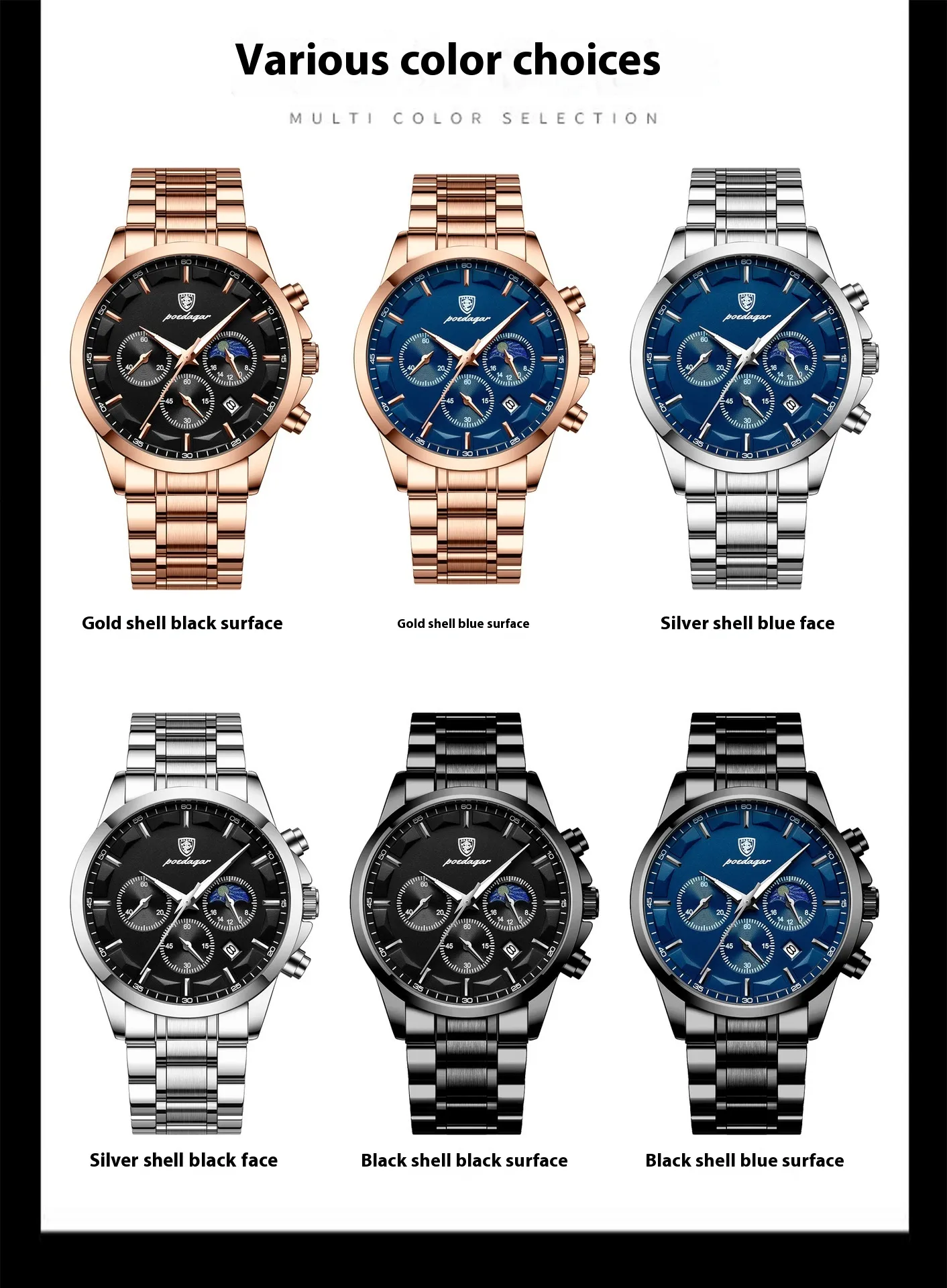Color: P928 silver shell blue surface steel strip, P928 silver shell black surface steel strip, P928 rose gold blue surface steel strip,