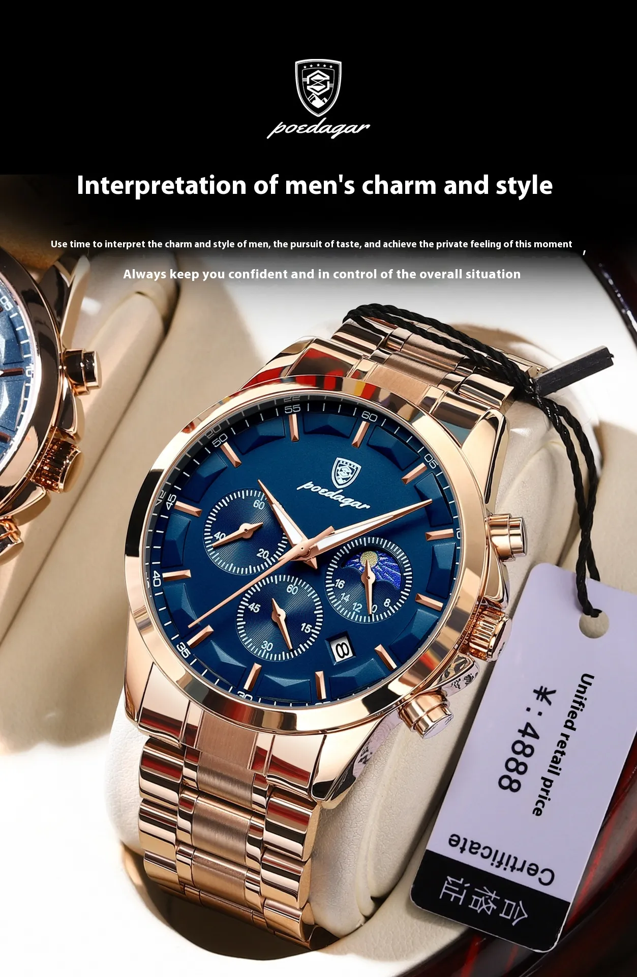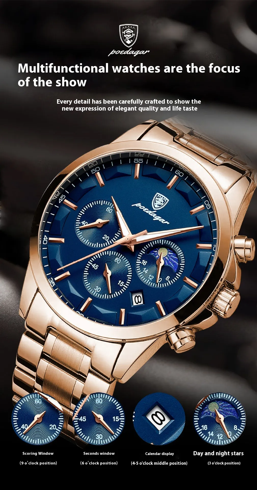 - Multifunctional: With chronograph, multiple time zones, date, and day display, this watch keeps you on track, no matter the situation.