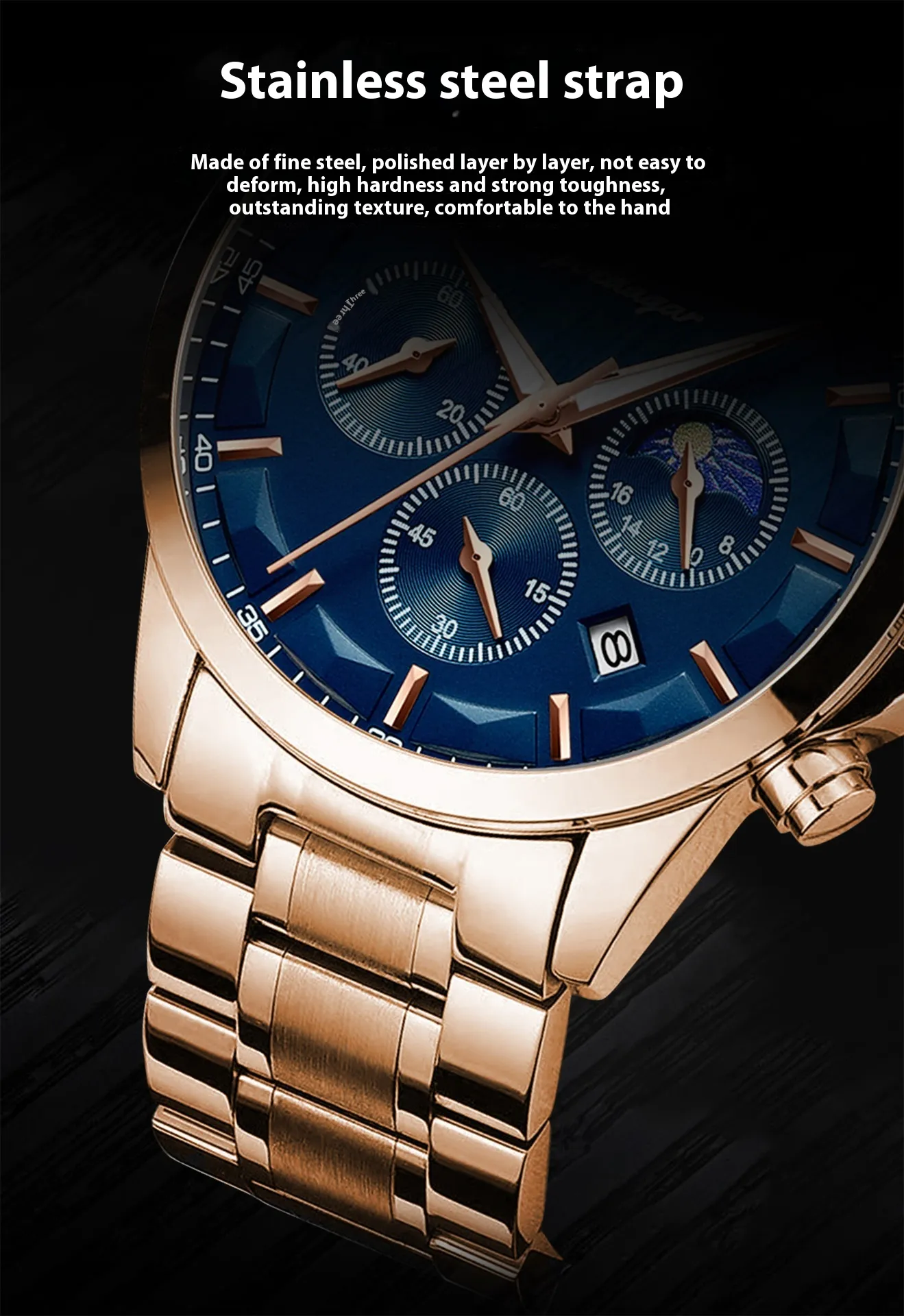 Quartz Movement for Accurate Timekeeping: At the heart of the watch is quartz movement, known for its