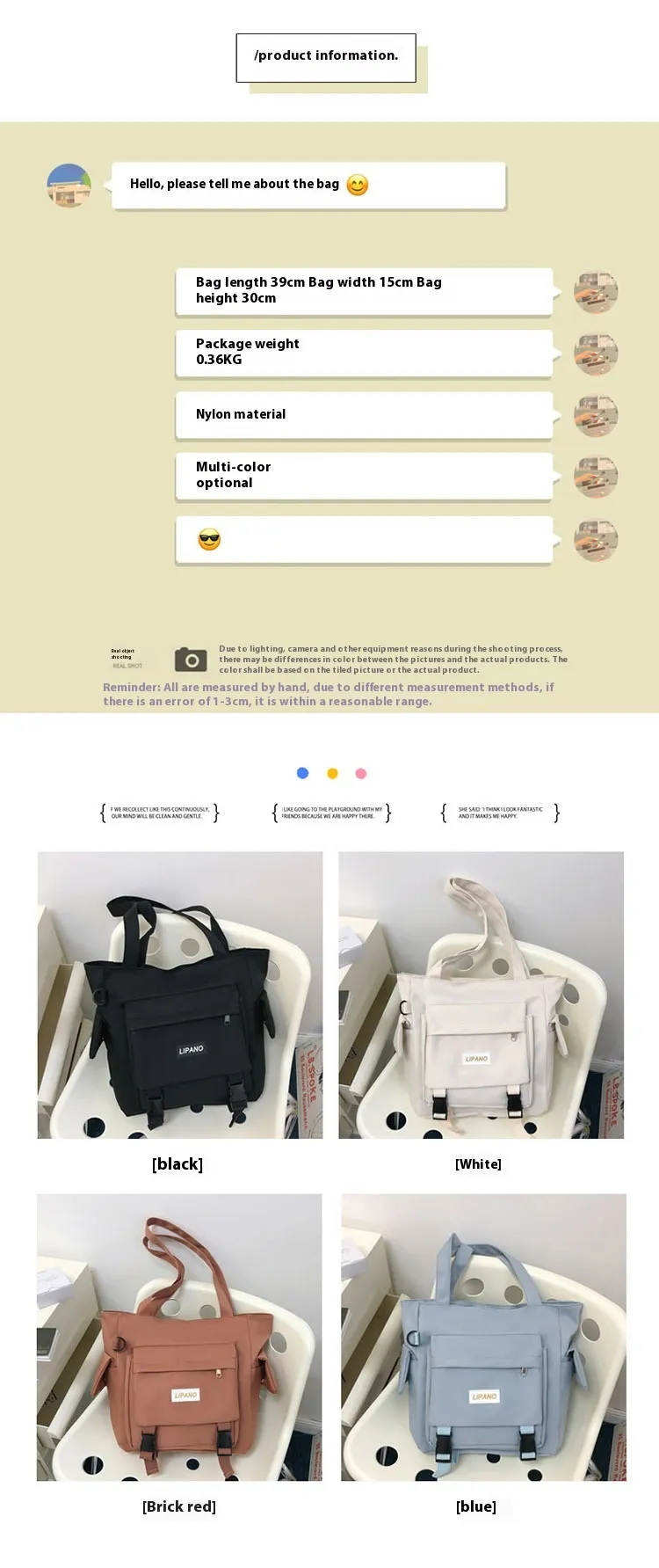 This large-capacity shoulder bag is not just for everyday use – it’s designed for various lifestyles. For students, it’s a reliable school bag that can easily fit books, notebooks, and a laptop. For commuters, it’s the ideal bag for carrying your work essentials. And for travelers, it offers enough space for a change of clothes, travel documents, and personal items. No matter the occasion, this versatile bag adapts to your needs, offering you the flexibility to use it for work, school, or travel.