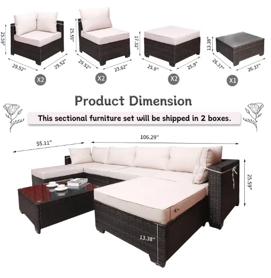 Product Name: Outdoor Garden Patio Furniture 7 Piece PE Rattan Upholstered Sofa Set & Coffee Table, Patio Furniture Set; outdoor sofas;