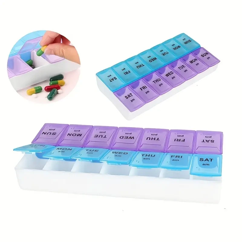 - The double-row design with 14 compartments makes it easy to plan and organize medications for the entire week, with separate sections for AM and PM doses.