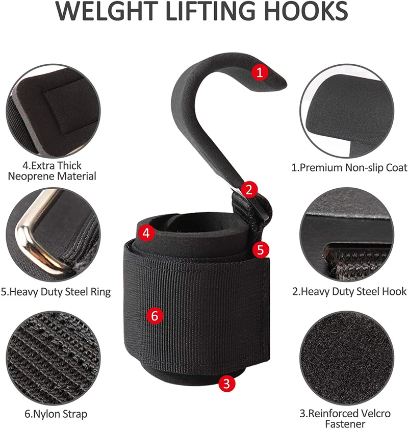 These hook grips are equipped with robust hooks coated with a non-slip material that secures your grip on the barbell or dumbbells, reducing hand fatigue and allowing you to focus on your form and execution.