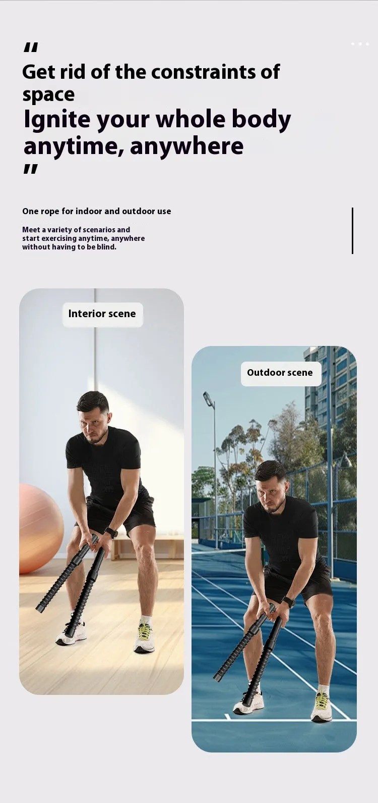 - Portable & Space-Saving: This innovative battle rope alternative replicates the dynamic swinging motion of traditional ropes while eliminating their cumbersome bulk. Engineered for compact convenience, its lightweight, foldable design transforms home workouts into effortless, on-the-go training sessions—empowering you to squeeze in a sweat session anytime, anywhere