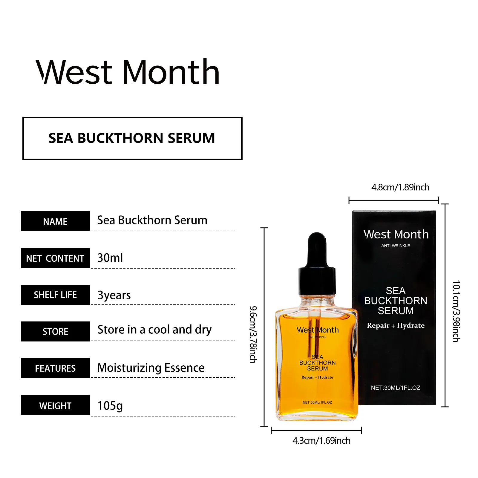 The West&Month Sea Buckthorn Moisturizing Essence offers deep hydration, improved firmness, and refined skin texture for a soft, tender complexion. Its gentle and effective formula makes it an essential step in any daily skincare routine — delivering comfort, radiance, and lasting moisture with consistent use.