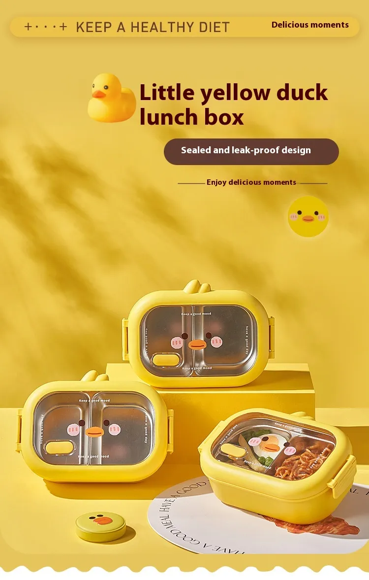 Wheat Cute Duck Stainless Steel Lunch Box Creative Compartment Thermal Box Portable