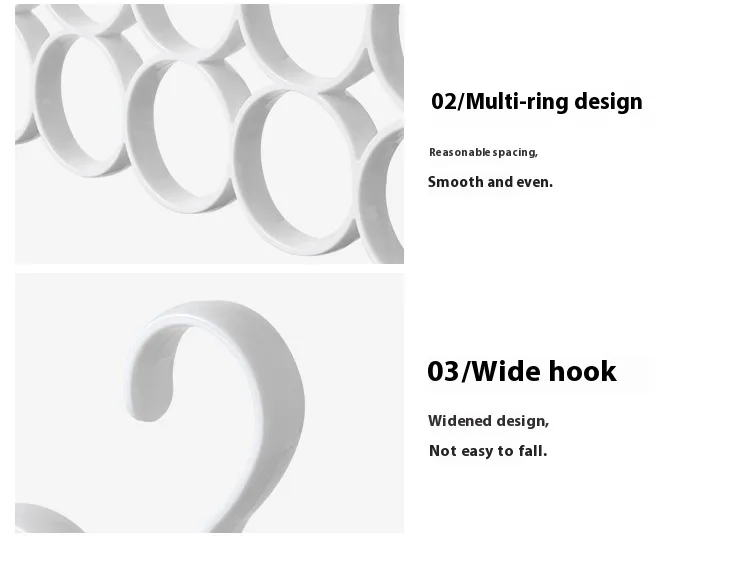 The White Clothes Hanger With Hoops Creative Plastic 15-ring Scarf Rack comes with 15 evenly spaced hoops, providing plenty of room to hang your scarves, ties, belts, and other accessories. The 15 rings ensure that you have ample space to organize your scarves without overcrowding, keeping them visible and easily accessible. Whether you have lightweight scarves or thicker ones, this rack can handle them all.