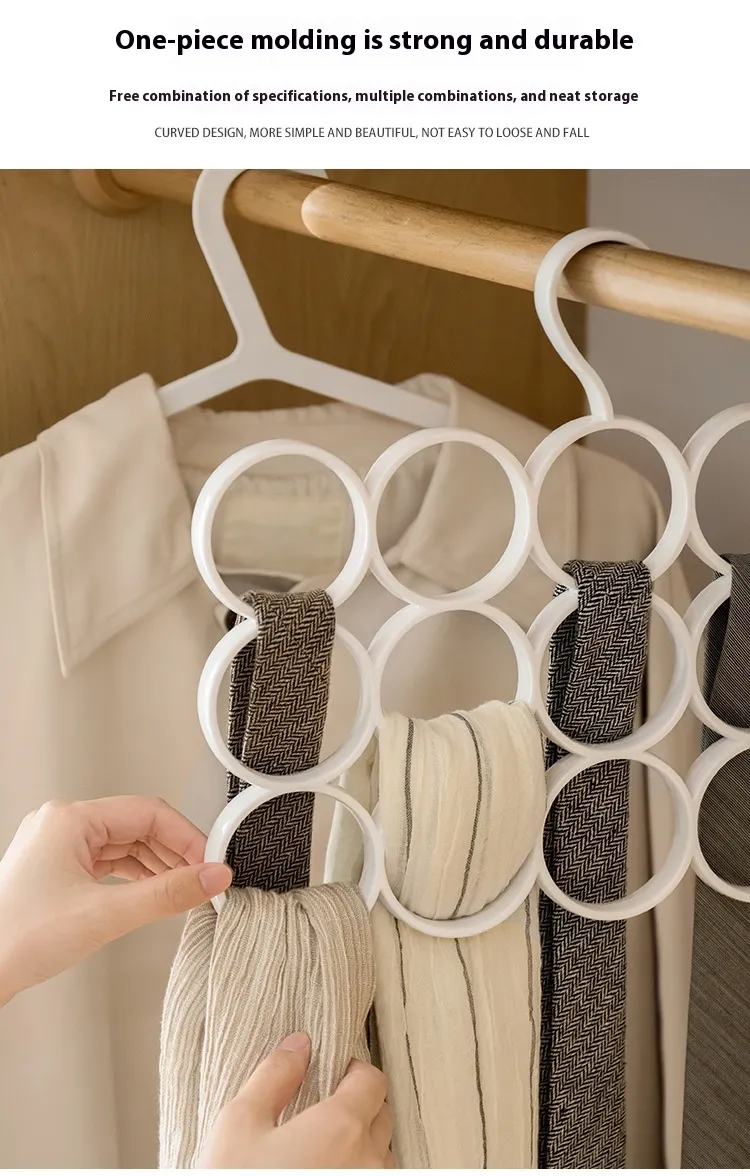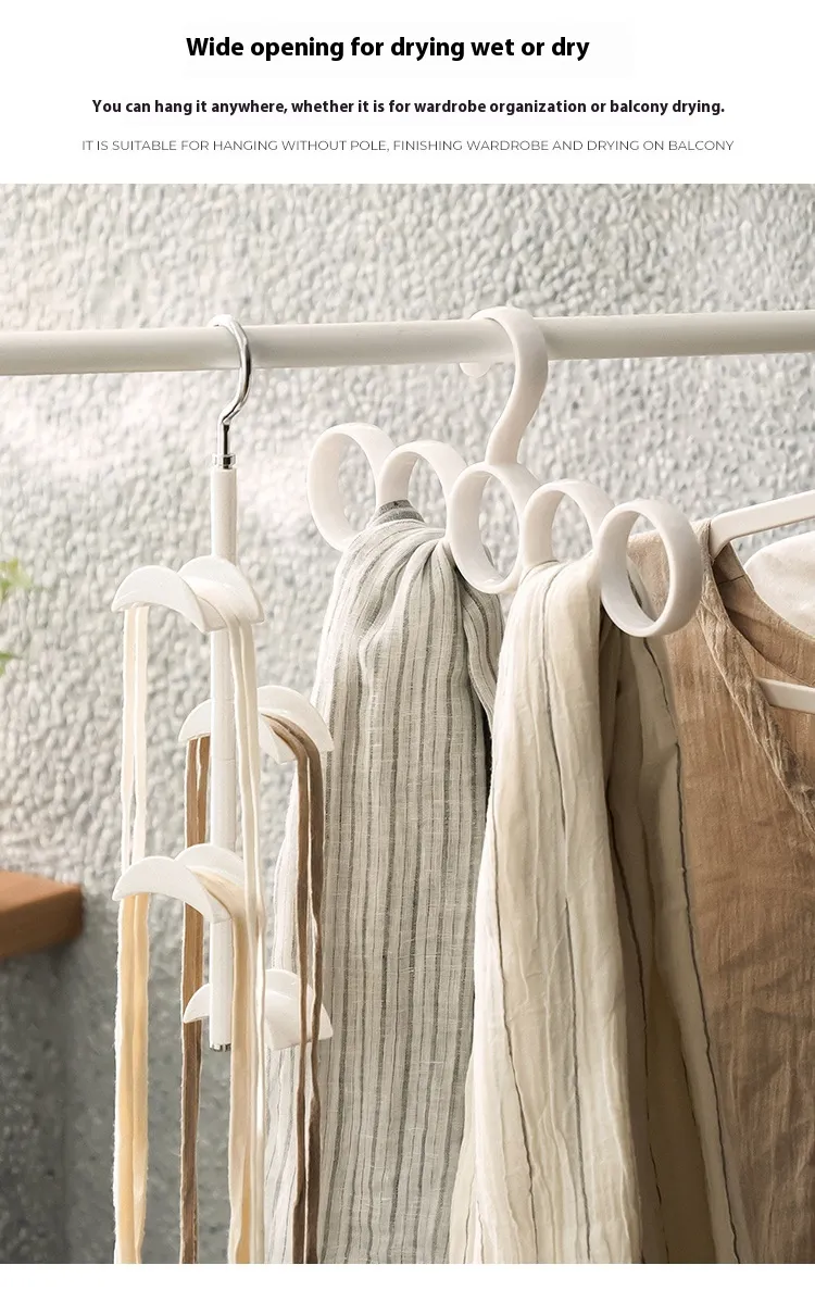 White Clothes Hanger With Hoops Creative Plastic 15-ring Scarf Rack: Keep Your Scarves Neat and Accessible
