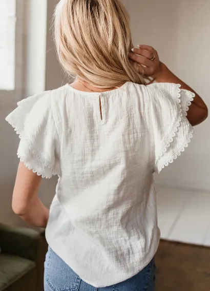 White Crinkled Layered Ruffled Flutter Sleeve Blouse