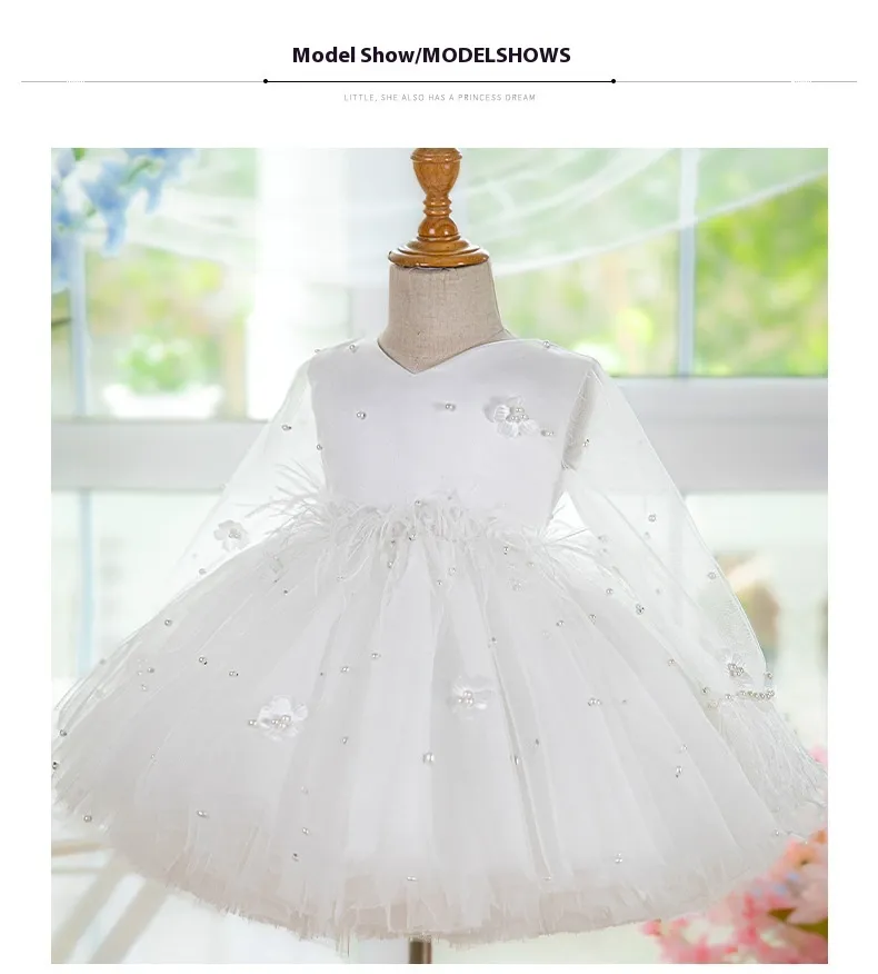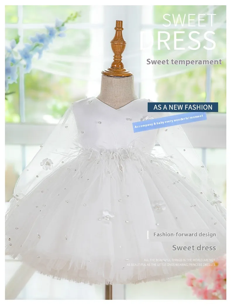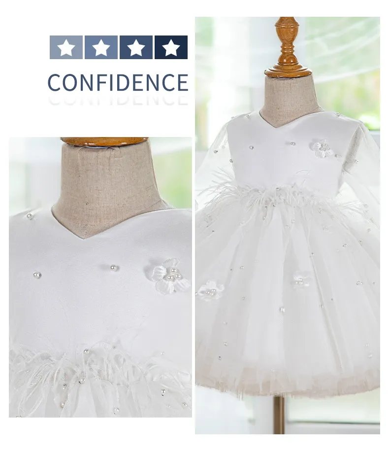 The White Girl One Year Old Celebration Dress Tulle Tutu Skirt is the perfect dress for celebrating your little one’s special milestone. This beautiful, elegant dress features a soft, breathable fabric and a playful tulle tutu skirt, creating an adorable and timeless look. Designed for comfort and style, this dress is ideal for first birthday parties, family celebrations, or any special event where you want your child to look as charming as ever.
