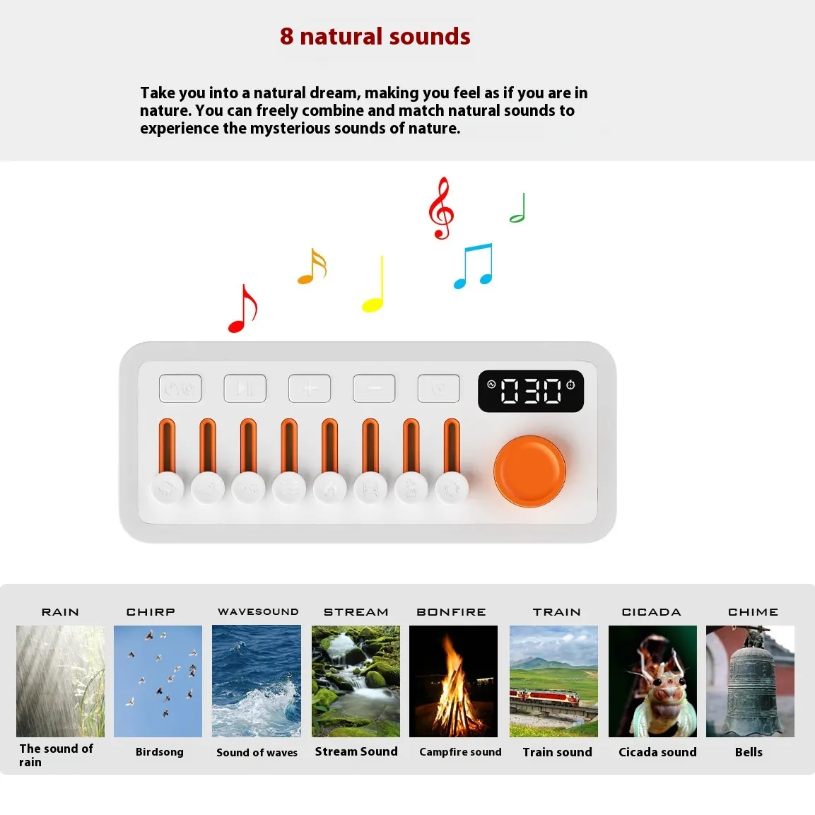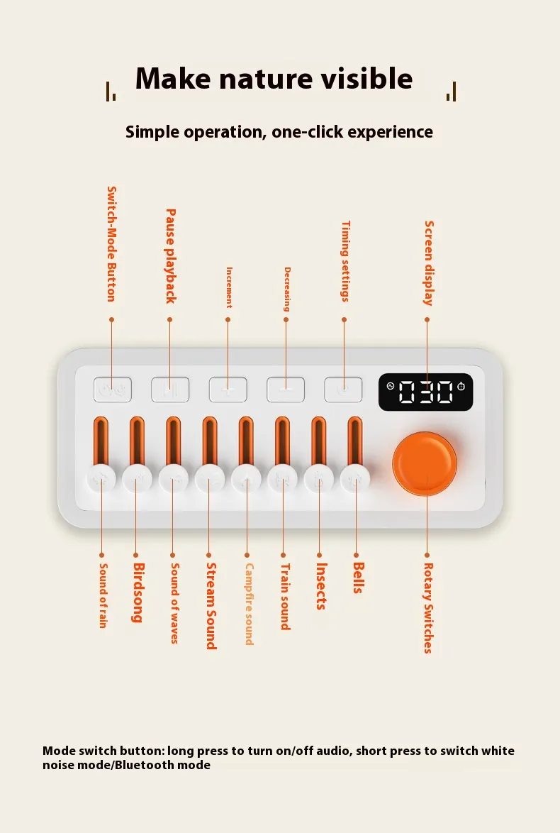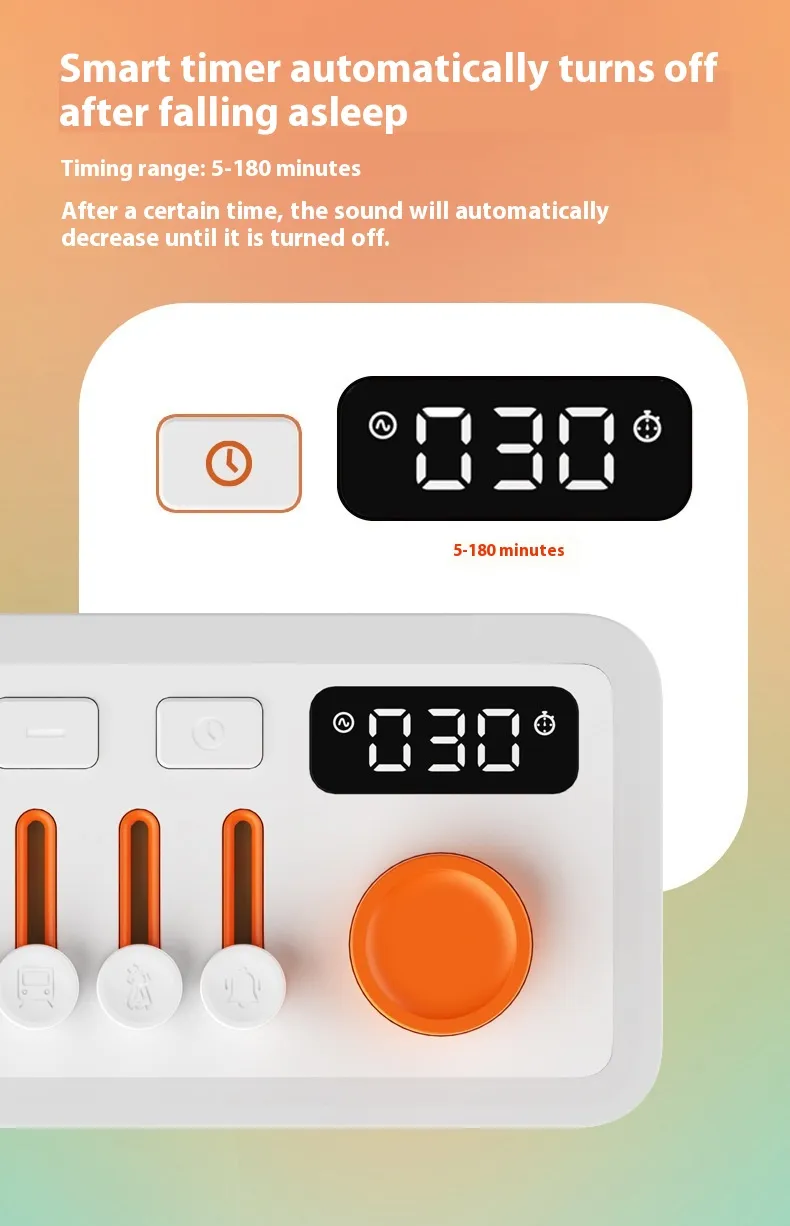 The integrated RGB seven-color night light adds a visually relaxing element, offering customizable lighting that can change between seven soothing colors, including soft blue, calming purple, and warm red. The light and sound features can be independently controlled, allowing you to create the perfect atmosphere for sleep, meditation, or relaxation.