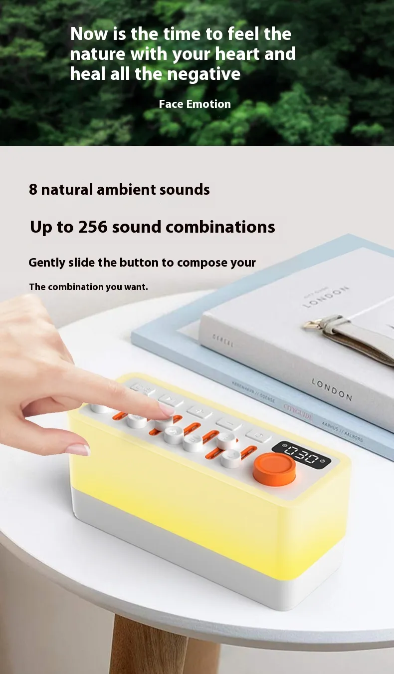 Ideal for the bedroom, nursery, office, or travel, this sound machine offers a simple, effective, and enjoyable way to improve your overall well-being. By combining sound and light therapy, it provides a holistic approach to better sleep, making it a must-have addition to your home or personal space.
