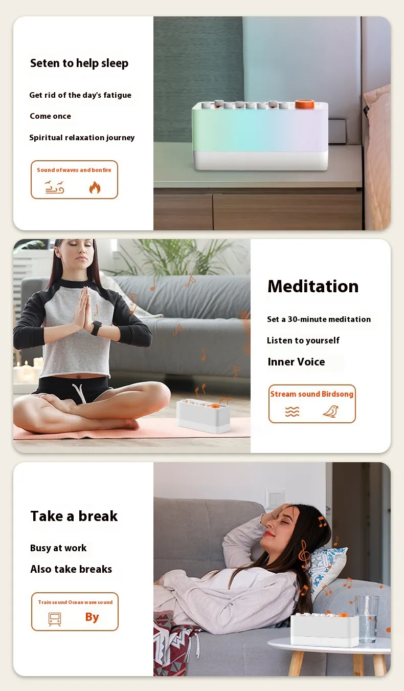 Improved Sleep Quality: White noise and nature sounds help block out background noise, promoting uninterrupted sleep and