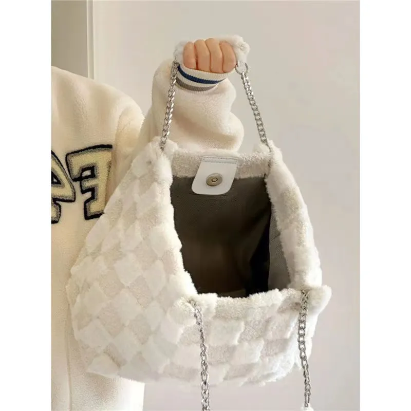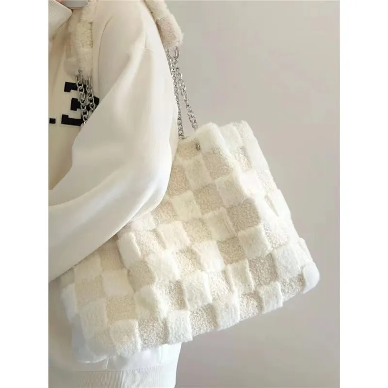Perfect for New Zealand women who want a stylish, functional, and cozy accessory, the White Plush One Shoulder Bag Casual Tote Bag is the ideal choice for everyday use.