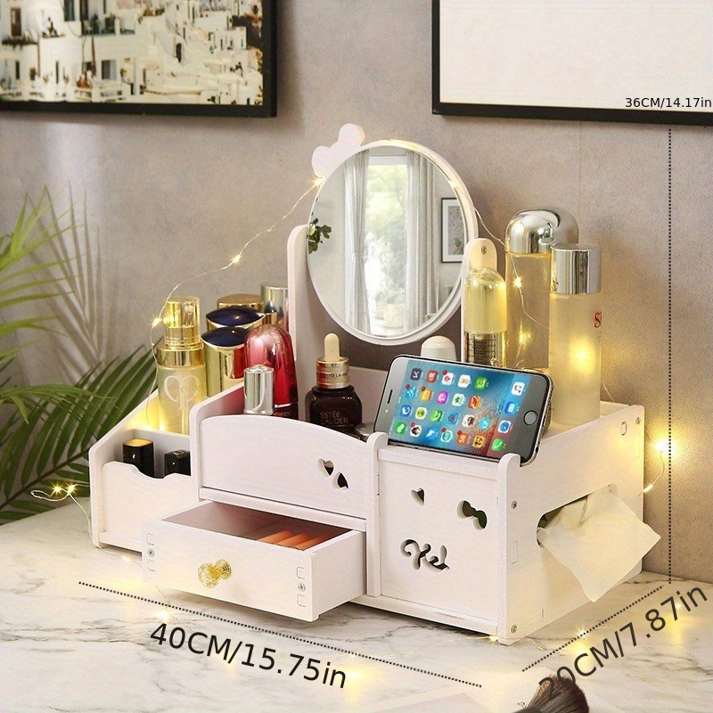 The compact design is ideal for small spaces, offering a functional beauty station without taking up too much room. It fits perfectly into tight corners or against the wall, helping you maximize your space.
