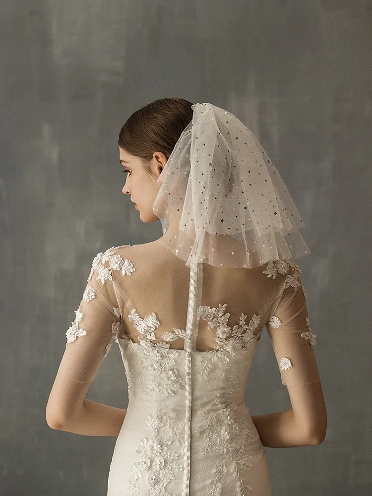 Perfect for traditional, modern, or minimalist brides, this short veil complements any wedding dress style, from classic ball gowns to sleek, contemporary designs.