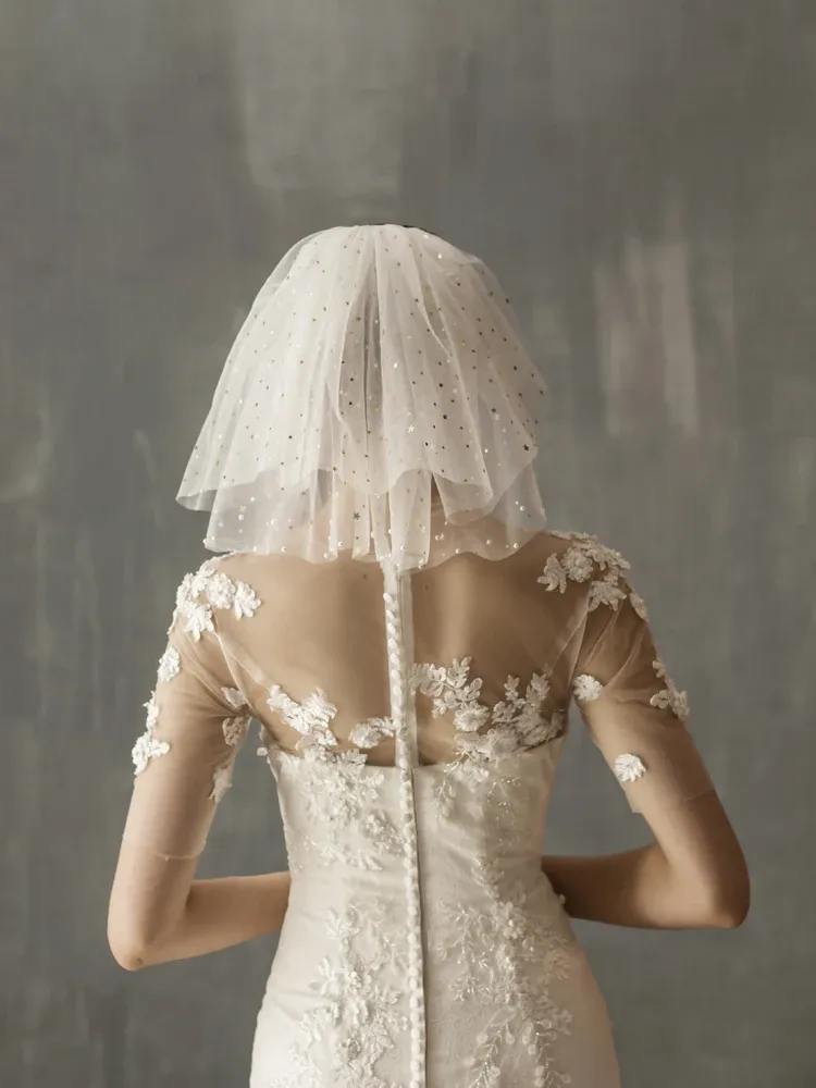 Looking for a timeless wedding accessory? This White Yarn Bridal Multi-Layer Short Veil is ideal for: