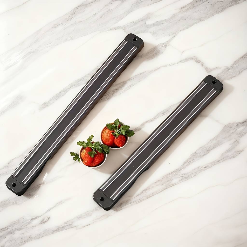 The WIEZ Magnetic Rack (Material: Plastic frame with strong internal magnet) is designed to mount on walls and hold metal tools securely in place. The powerful magnet grips knives, scissors, wrenches, and cutting tools without slipping, while the plastic body keeps the rack lightweight and easy to handle.
