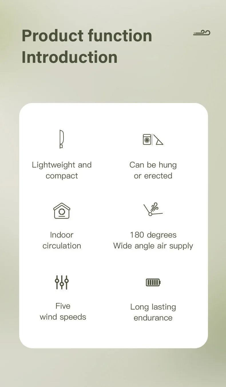 Powered by a lithium battery, the fan offers extended usage time on a single charge. This long battery life ensures that you can enjoy continuous airflow during your activities without frequent recharging.