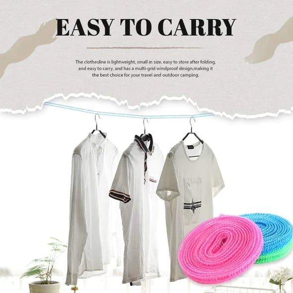 This clothesline is windproof and so easy to carry!Great for camping,hotel,home use and more.