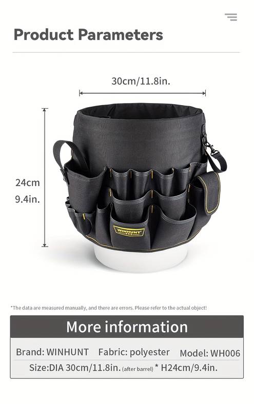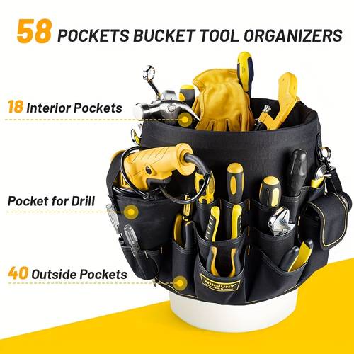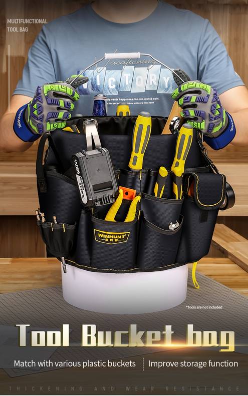 The WINHUNT Heavy-Duty Bucket Tool Organizer is designed to keep your tools organized, easily accessible, and securely stored. Constructed from durable polyester fabric, this organizer features reinforced stitching to ensure long-lasting use, even in the most demanding environments. The multiple compartments are ideal for storing a variety of tools such as wrenches, screwdrivers, and hammers, while the ergonomic pocket design offers quick and easy access to your essential tools.