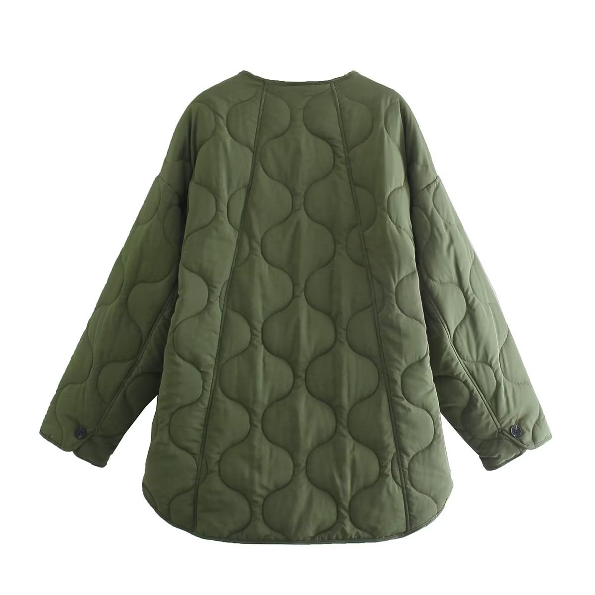 Introducing the "Evergreen Elegance Women's Quilted Coat" – your ultimate companion for style and warmth during the colder months. Crafted with a perfect blend of fashion-forward design and cozy comfort, this cotton-padded coat is an essential addition to your winter wardrobe.