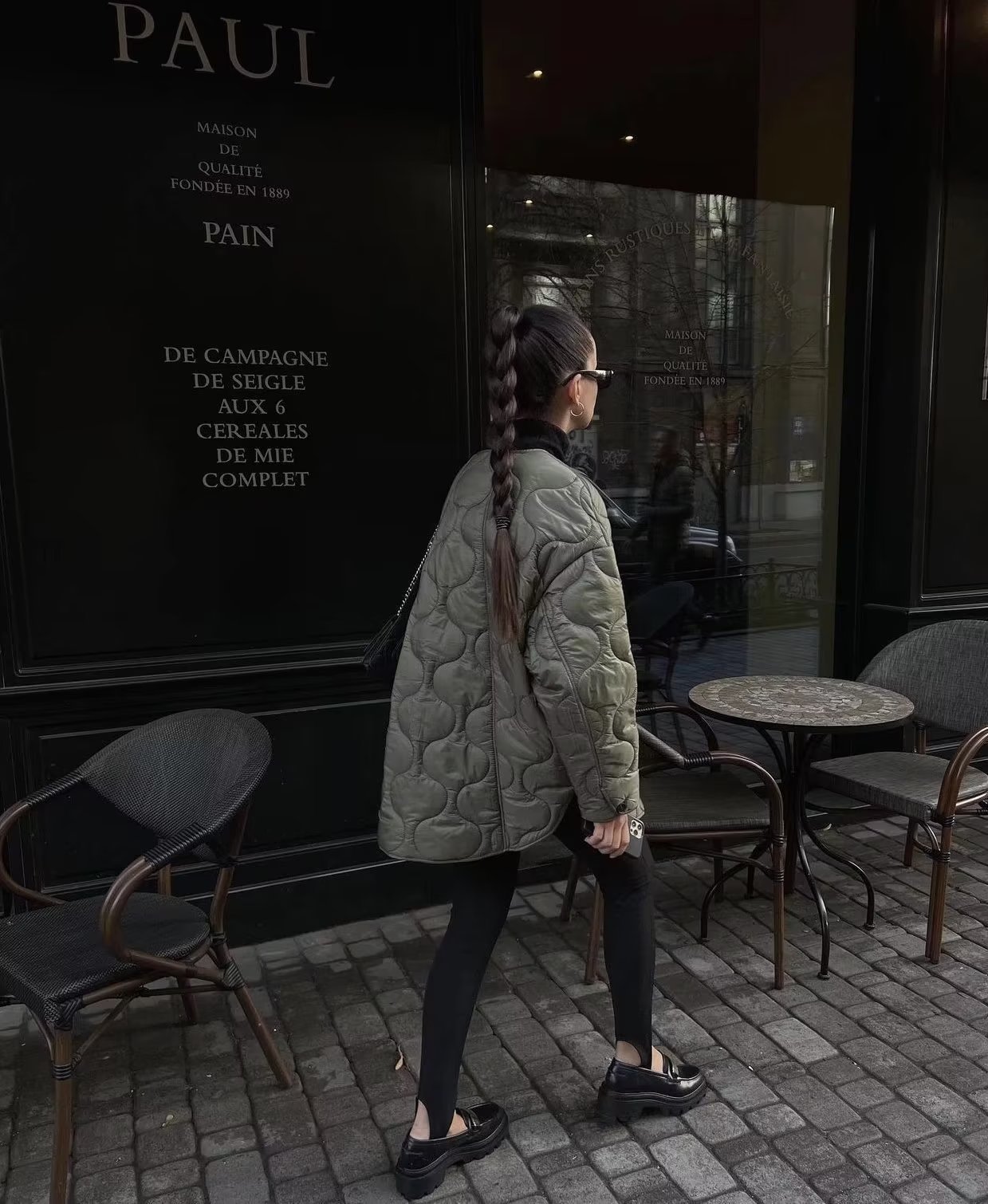 The Evergreen Elegance Coat features a sophisticated quilted pattern that adds a touch of timeless charm to your outfit. The classic olive green color is versatile and pairs effortlessly with any ensemble, ensuring you look chic and stylish no matter where you go.