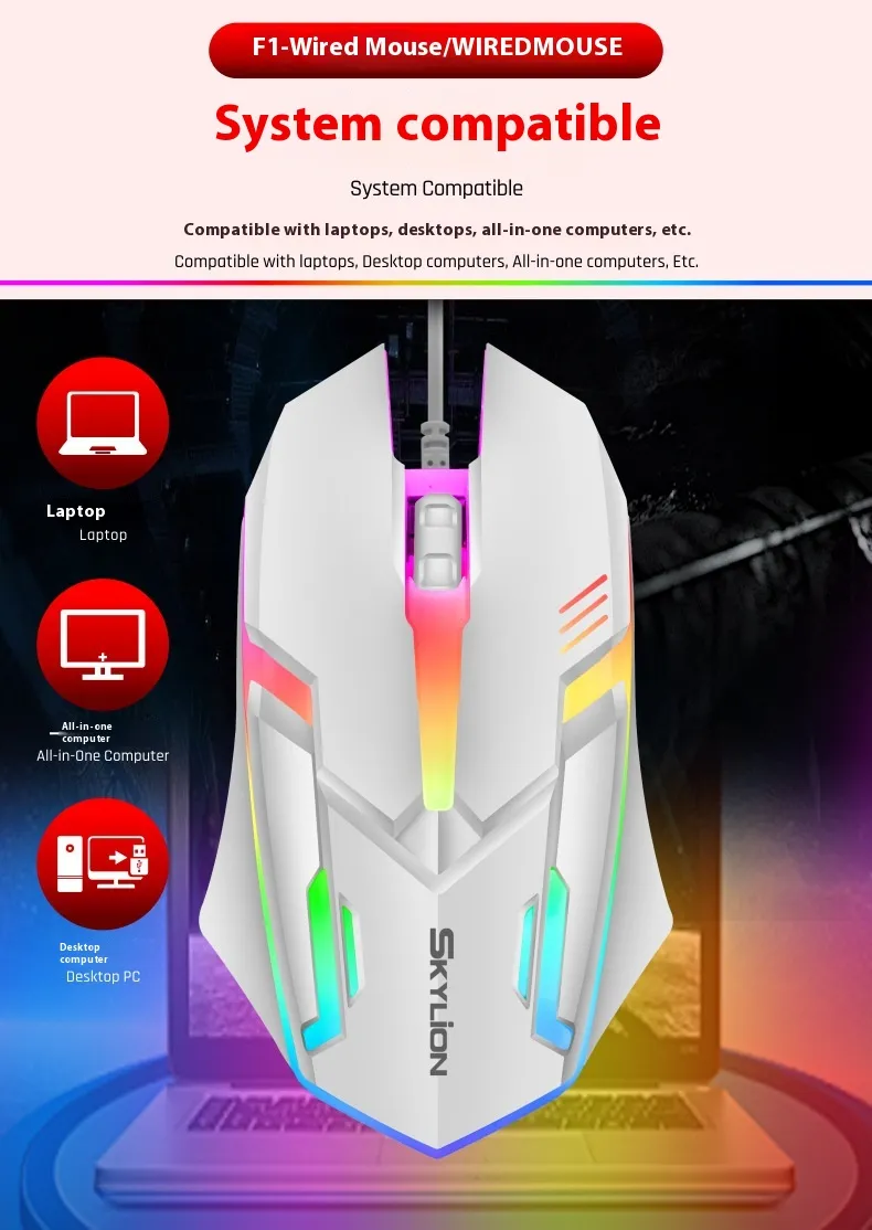 The Wired Luminous Mouse is designed for versatility and performance, making it perfect for both work and play. With a USB plug-and-play connection, this mouse is universally compatible with desktop computers and laptops, providing smooth and reliable performance across devices. The mouse features a vibrant, luminous design, adding a stylish touch to any setup while enhancing visibility in low-light environments. Ideal for gaming enthusiasts, it brings added flair and precision to competitive games like PlayerUnknown’s Battlegrounds (PUBG), making it a great choice for gamers who need accurate control.