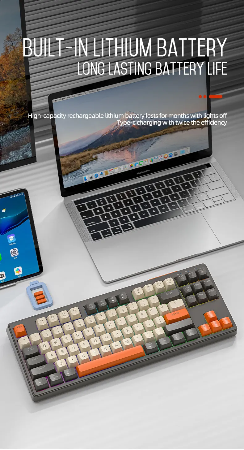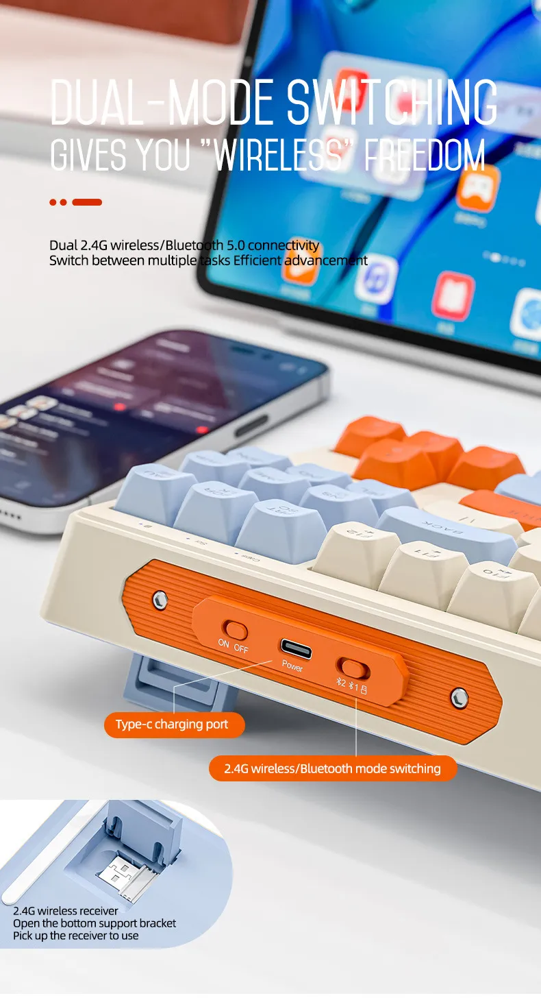 Enjoy the perfect balance of wireless freedom and reliable wired performance with the Wireless Bluetooth Dual Mode Mechanical Feeling Keyboard – the ultimate choice for productivity and gaming.