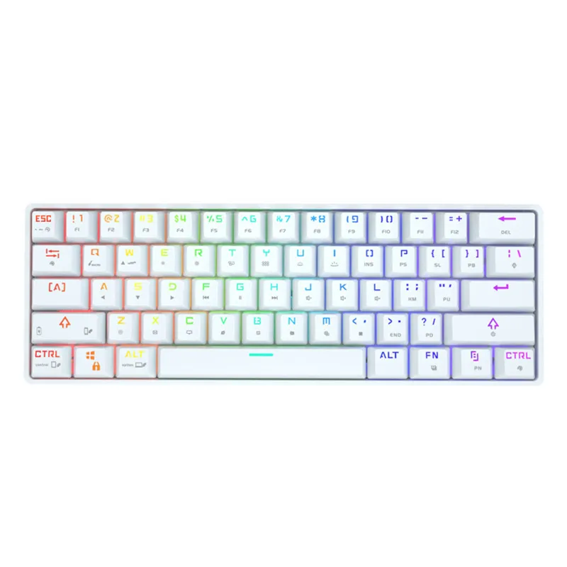 One of the standout features of this keyboard is its colorful PBT keycaps. Made from PBT plastic, these keycaps are durable, resistant to wear, and retain their color and texture over time. Unlike cheaper ABS keycaps, PBT keycaps do not develop a shiny appearance after prolonged use, ensuring that your keyboard maintains its vibrant look for a longer period. The keycaps are stably printed, providing a smooth typing experience without the risk of fading.The colorful keycaps add a playful and modern touch to the keyboard, making it an eye-catching piece of equipment. Available in various color schemes, these keycaps can easily be customized to fit your personal style or workspace aesthetic, making the keyboard not just functional but also a piece of art.